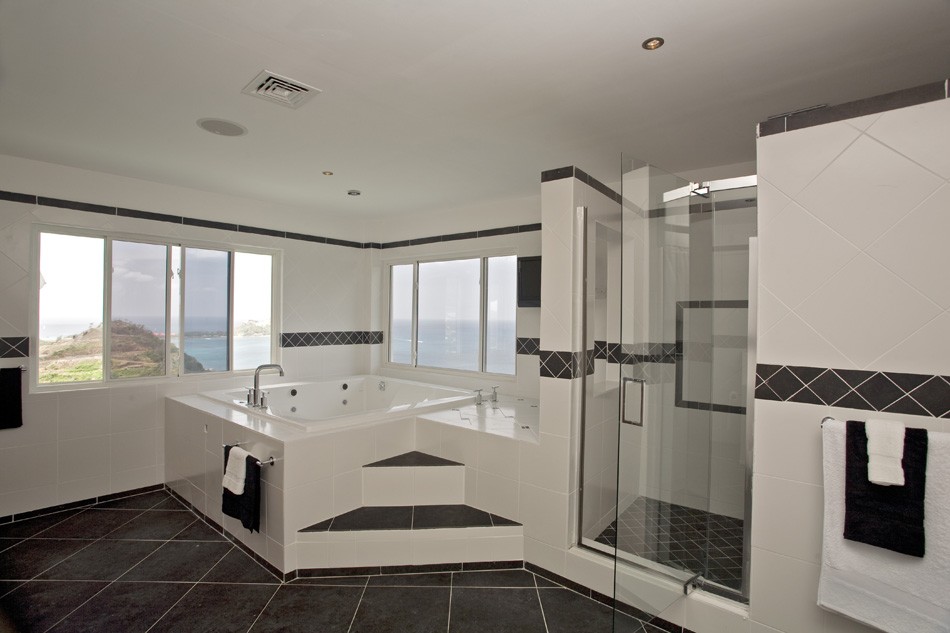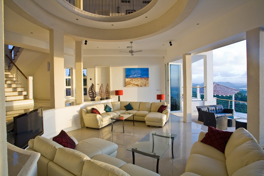 This is modern contemporary villa that is unrivalled by any other accommodation on the Caribbean island of St. Lucia. We sleep up to 12 guests in complete luxury, notable features include a breathtaking infinity pool with amazing views of the Caribbean Sea, huge sunken living room, 4000 sq ft of terracing, dedicated home theatre and much much more. The Villa is nestled in the hills above above Cariblue Beach in St. Lucia, only minutes away from many beaches, restaurants and bars. From the infinity pool you will have sweeping views on the Caribbean Sea and other iconic St. Lucian landmarks The Pitons, Pigeon Island, and Rodney Bay. Within a few minutes of the villa you could be playing golf, snorkeling, horse riding, kite surfing, and scuba diving. Stay at home for spa treatments or exercise with your personal yoga instructor. Our conceirge service makes it easy to plan out your vacation with as many, or as few, activities as you would like. Adjacent to the property, and included in the sale price, is a 32, 000 sq ft lot, offering incredible potential for expansion.